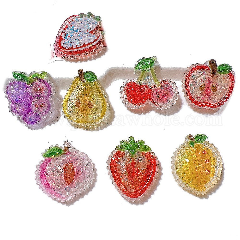 Кабошоны из смолы, с блеском, имитация фруктов, разнообразные (02XTPG)