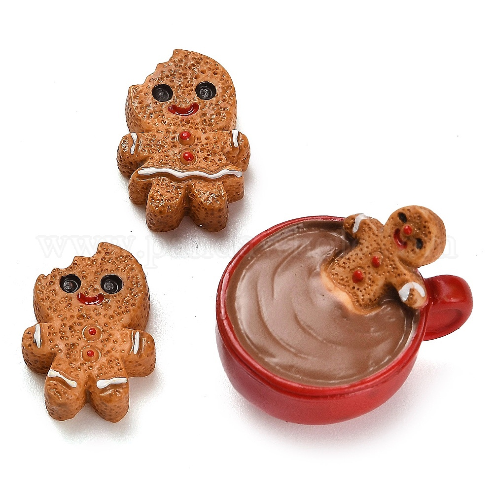 • Gingerbread Man Кабошоны из непрозрачной смолы с рождественской тематикой, Колобок, 14.5x11x4.5 мм