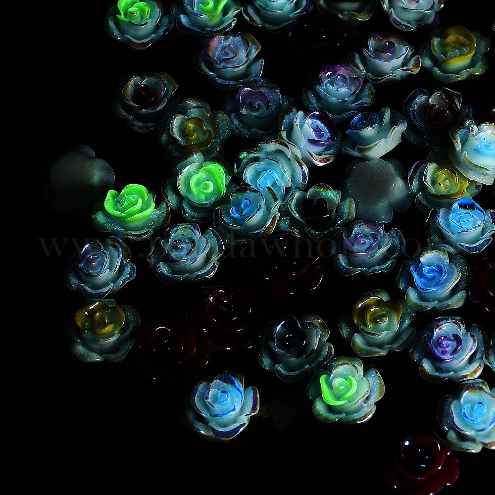 Кабошоны из светящейся непрозрачной смолы, цветок, два тона, светится в темноте