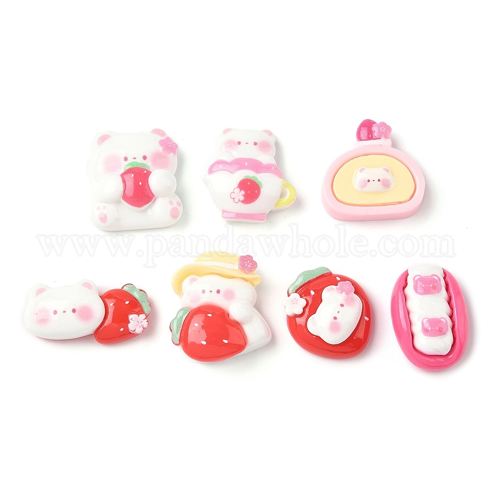 Кабошоны из непрозрачной смолы с изображением медведя-клубники (032PF6)