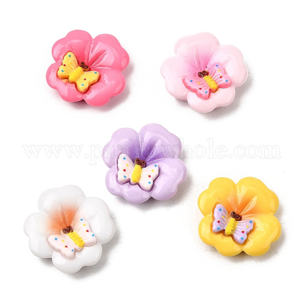 Непрозрачные кабошоны из смолы, цветок с бабочкой (035KWJ)