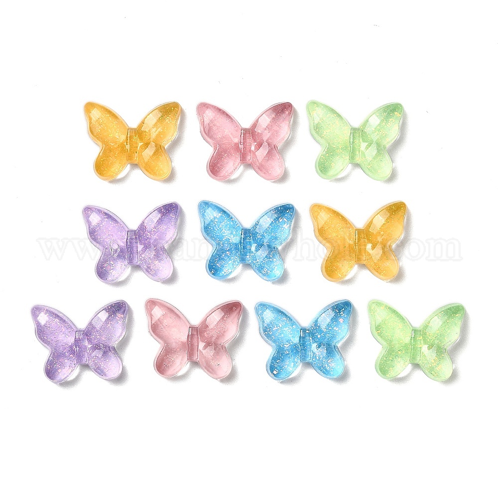 Прозрачный кабошон из смолы, бабочка, с блеском порошок