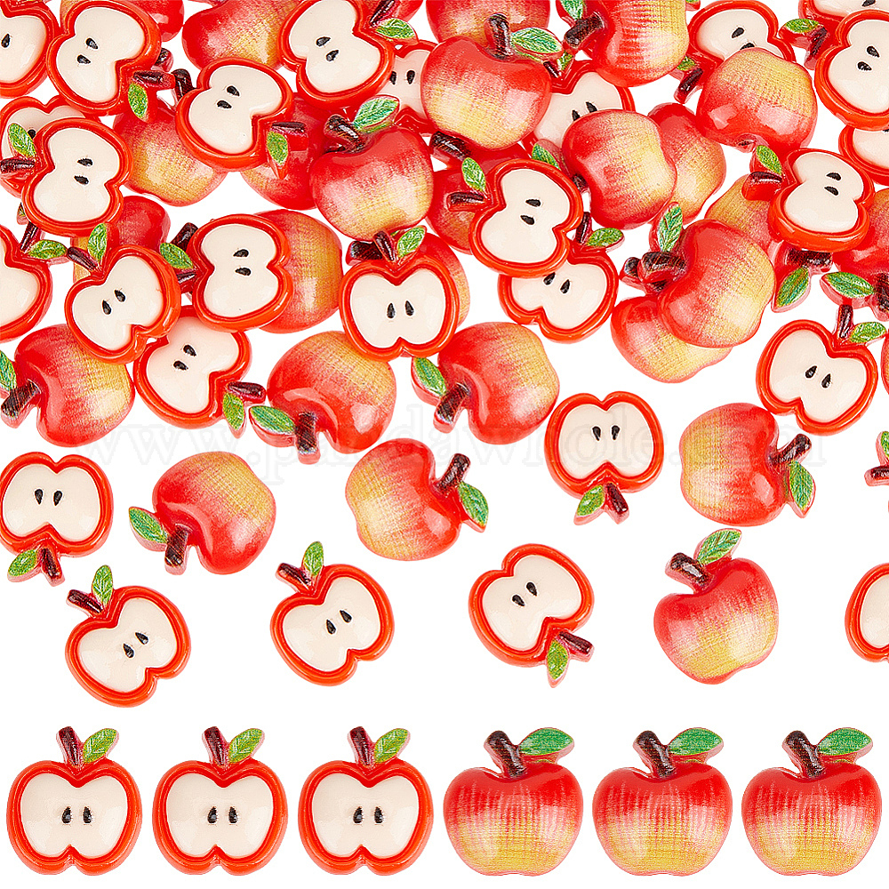 • Красный 60 шт 2 стили кабошоны из смолы, имитация еды, яблоко, красные, 19x18x6 мм, 30 шт / стиль