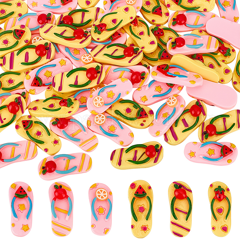 60шт. 6 стили фруктовые непрозрачные смоляные кабошоны, тапочка