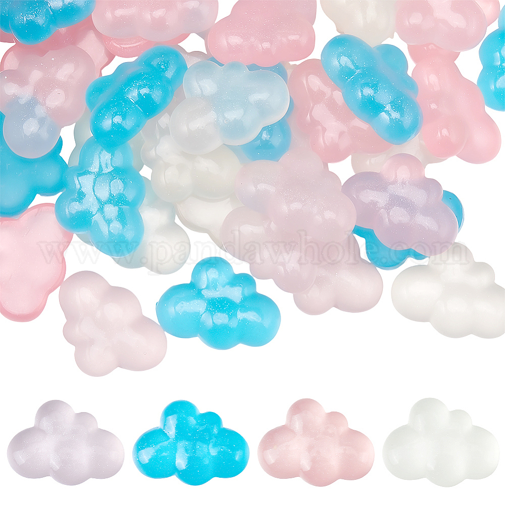 40шт 4 цвета светящиеся прозрачные кабошоны из смолы, облако, с блестка, светится в темноте