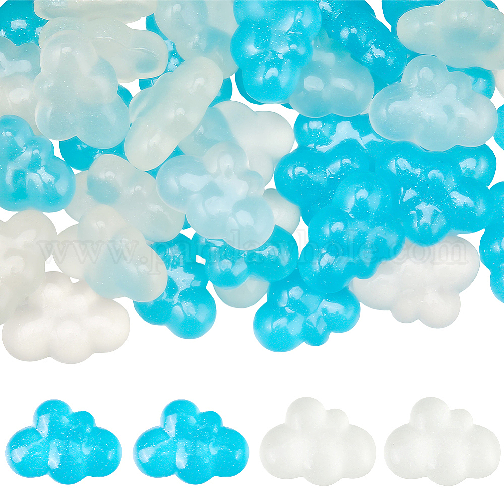 40шт 2 цвета светящиеся прозрачные кабошоны из смолы, облако, с блестка, светится в темноте