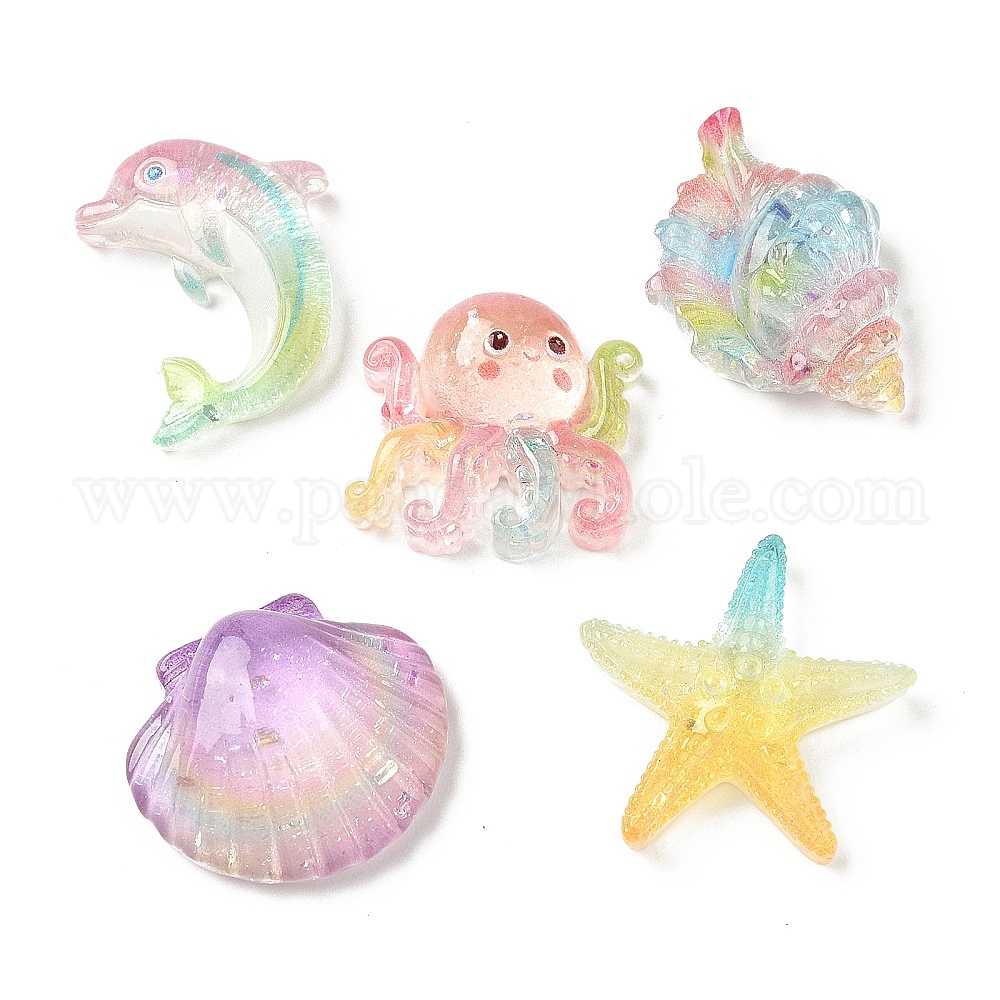 Кабошоны из прозрачной смолы морских организмов, разнообразные