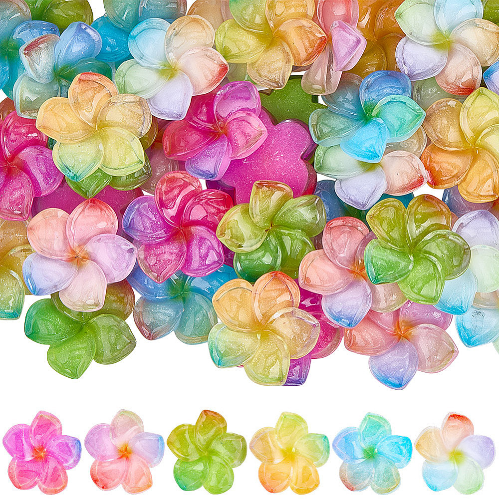 48 шт 6 цвета прозрачные кабошоны из смолы, Плюмерия цветок, с блеском порошок