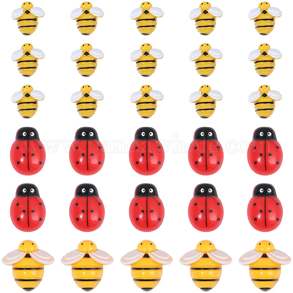 60 шт 3 стили кабошоны из непрозрачной смолы, пчелы и божья коровка
