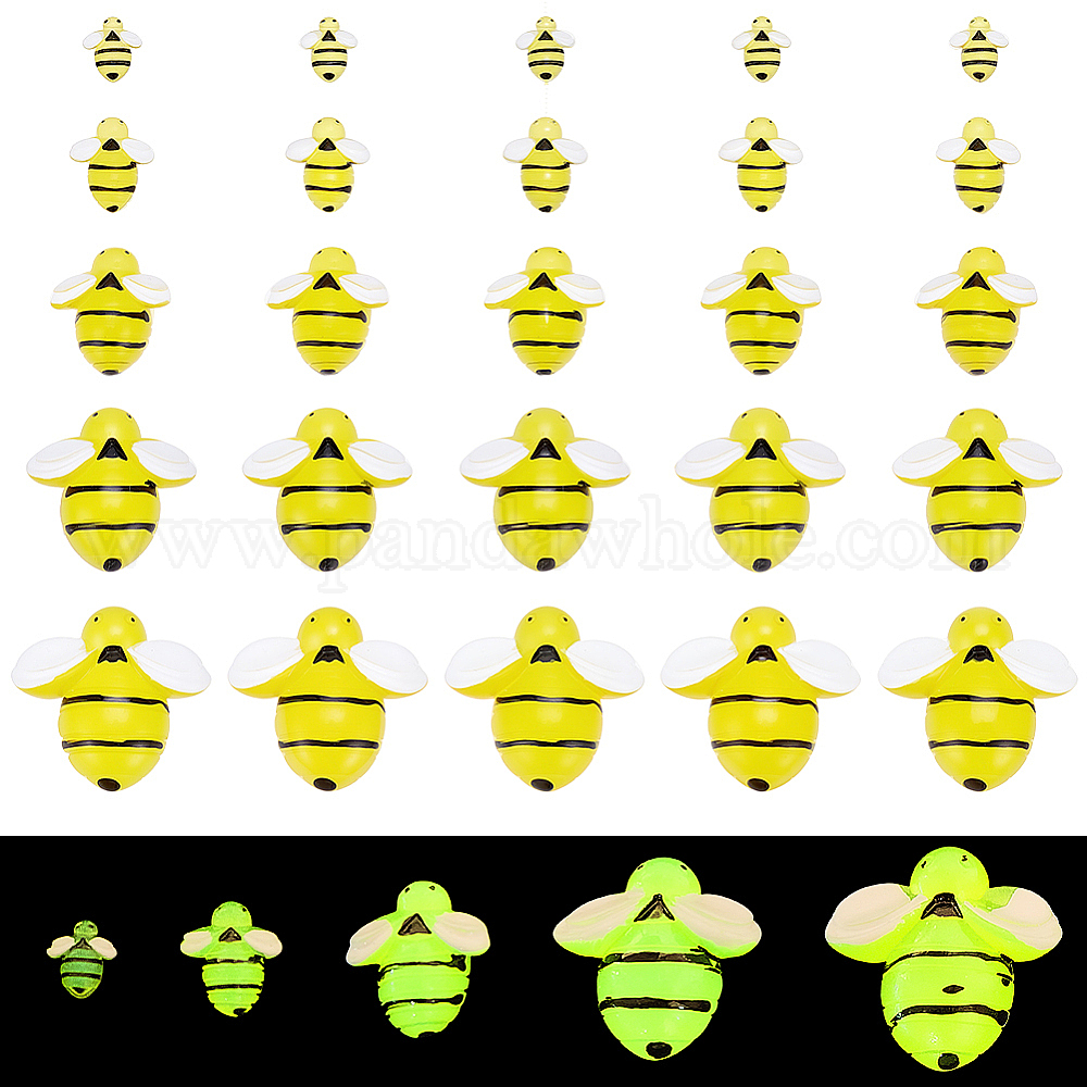 74шт. 5 стили светящихся прозрачных смоляных кабошонов, Пчелы, светится в темноте