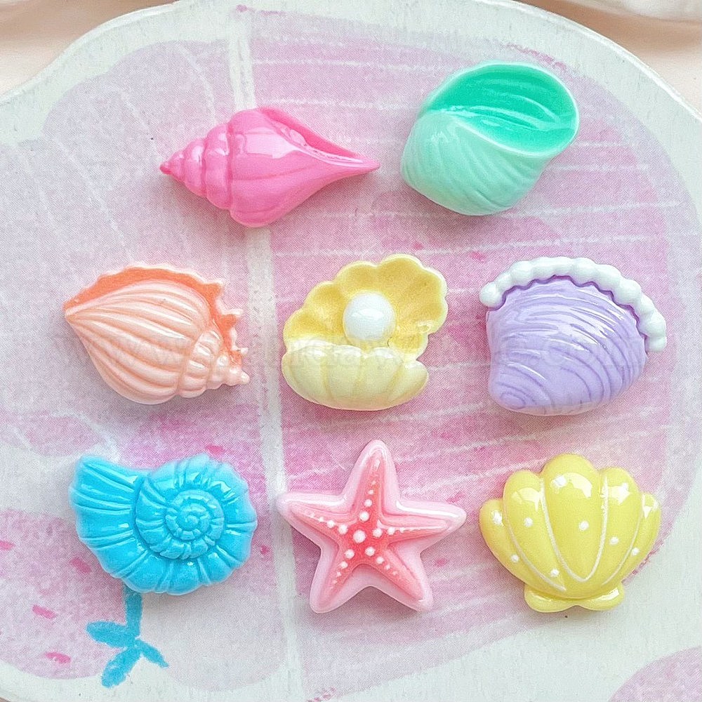 Кабошоны из непрозрачной смолы на тему океана, форма ракушки и морской звезды (038FEE)