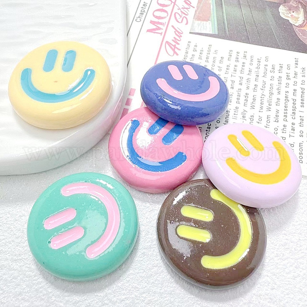 Непрозрачные кабошоны из смолы, плоские круглые с улыбающееся лицо