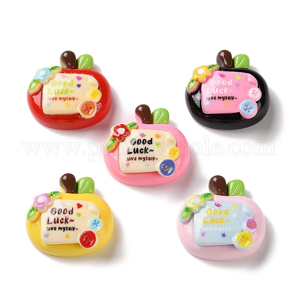Непрозрачные кабошоны из смолы, яблоко с цветком и запиской о удаче (03944M)