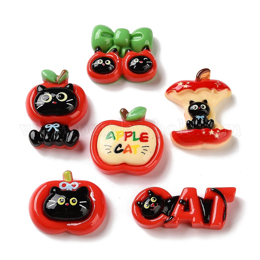 Непрозрачные кабошоны из смолы, кот с яблоком