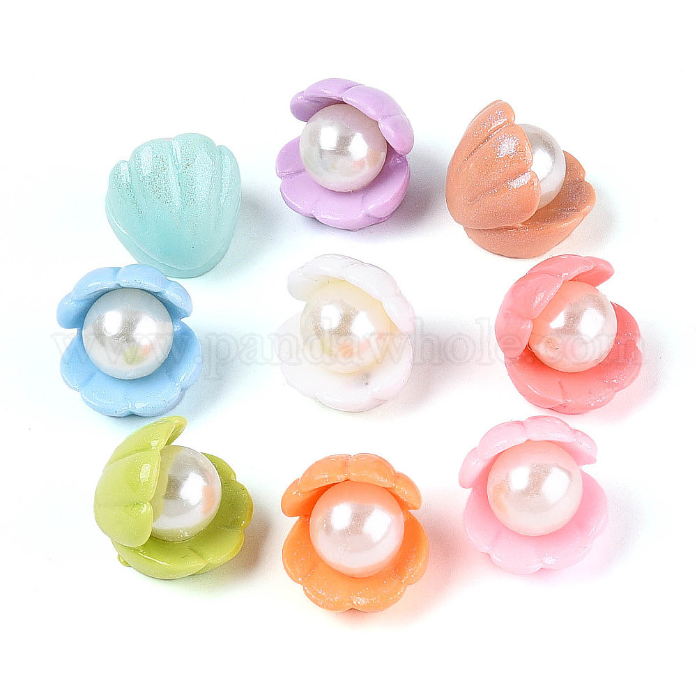 Кабошоны в форме ракушки из непрозрачной смолы и искусственного жемчуга, с блеском порошок