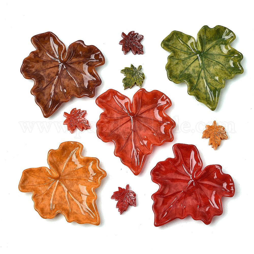 Непрозрачные кабошоны из смолы, кленового листа
