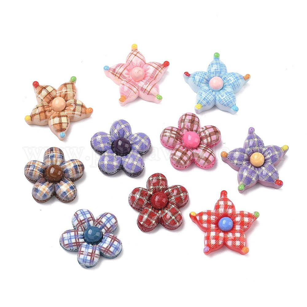 Кабошоны из непрозрачной смолы с клетчатым узором, цветок