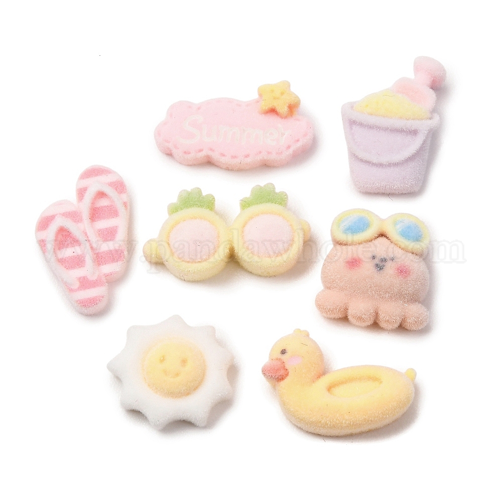 Летние пляжные кабошоны из непрозрачной смолы с бархатным покрытием, разнообразные