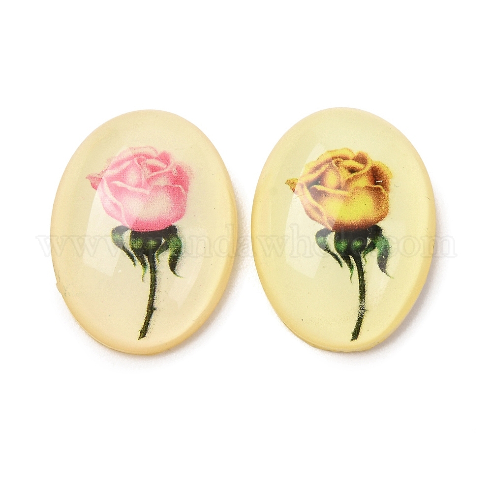 Прозрачные смолы кабошоны, овальные с розовым цветком