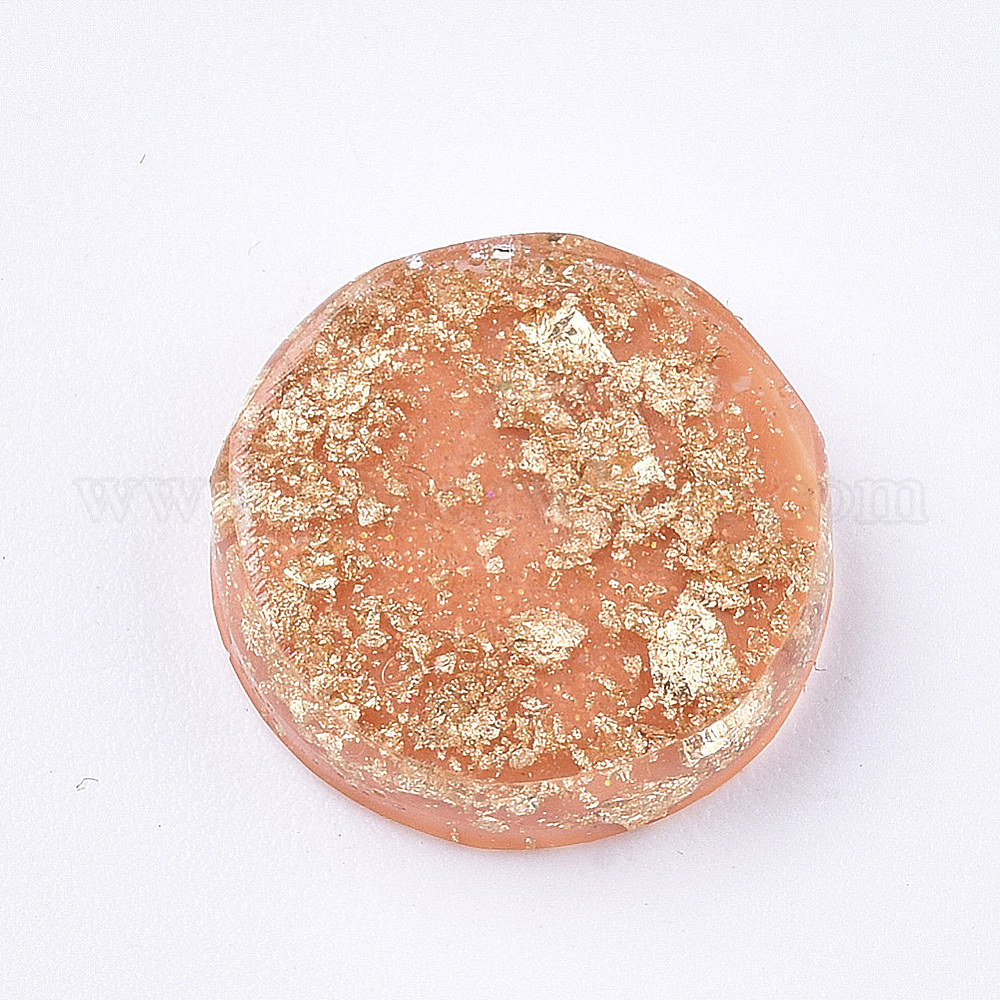 Кабошоны из полупрозрачной смолы, золотой фольгой внутри, плоско-круглые (00Z1C2)