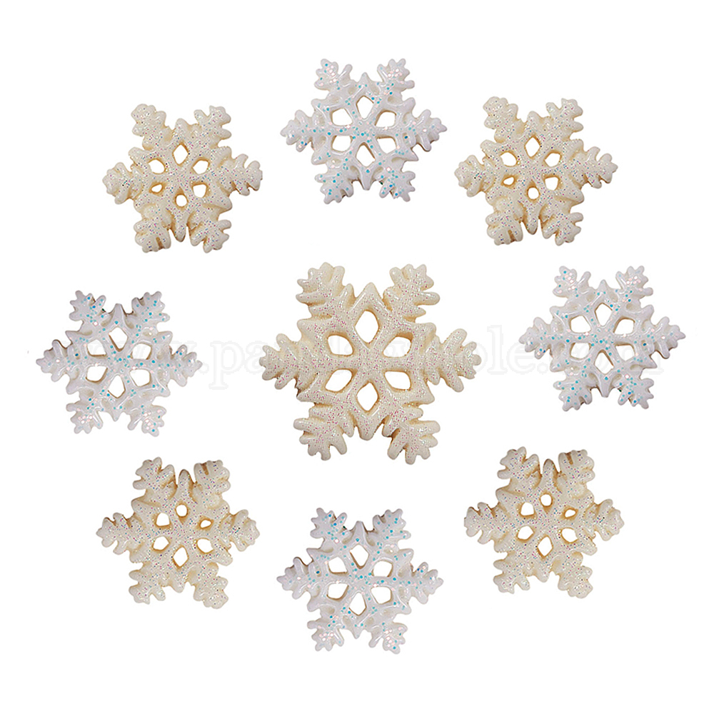 Непрозрачные кабошоны из смолы, с блеском порошок, Рождество, снежинка, бежевый и снег