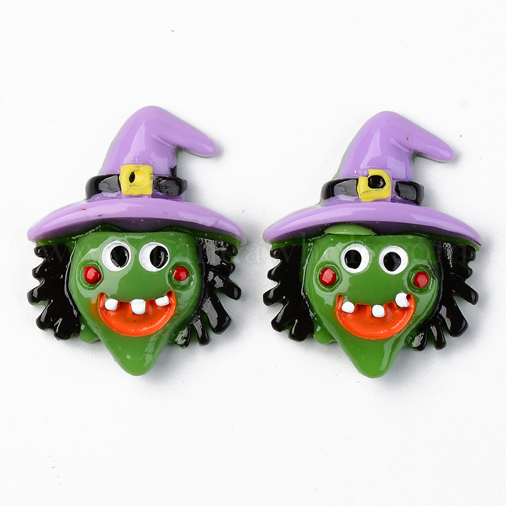 • Разноцветный Кабошоны из смолы, Хэллоуин тема, Opauqe, ведьма, красочный, 28x23x7 мм