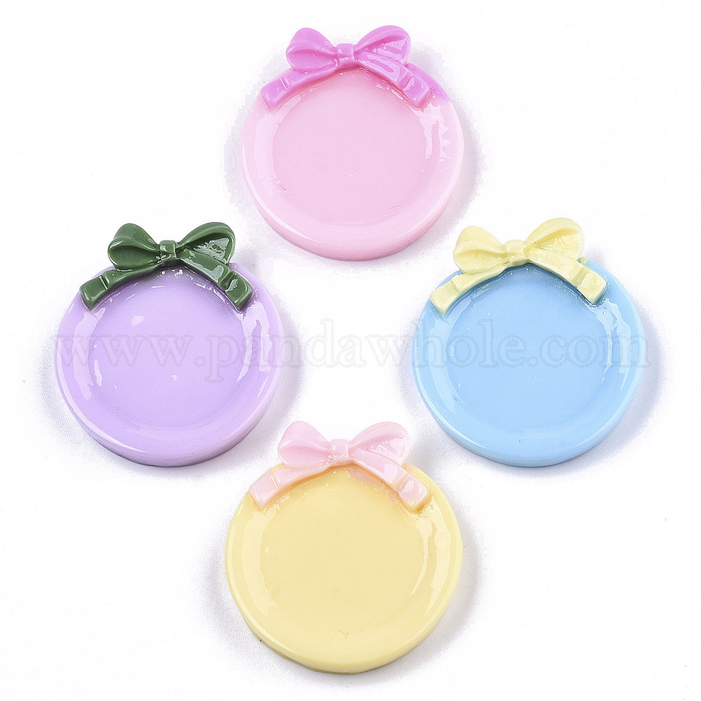 • (52) Непрозрачная лаванда Непрозрачные кабошоны из смолы, плоские круглые с бантом, разноцветные, 32x29x7~8 мм