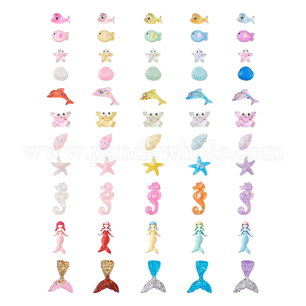 110 шт 11 стиль непрозрачные кабошоны из смолы, морской конек, кит, морские звезды, дельфин, русалка, ракушка, хвост русалки, рыбка, морская звезда, краб и раковина