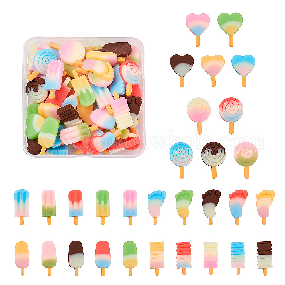 60 шт. 6 стиль декодирования кабошонов из смолы, Диетические аксессуары, Для изготовления ювелирных изделий из смолы, имитация еды, присоска для льда и форма ступни, форма сердца и леденец