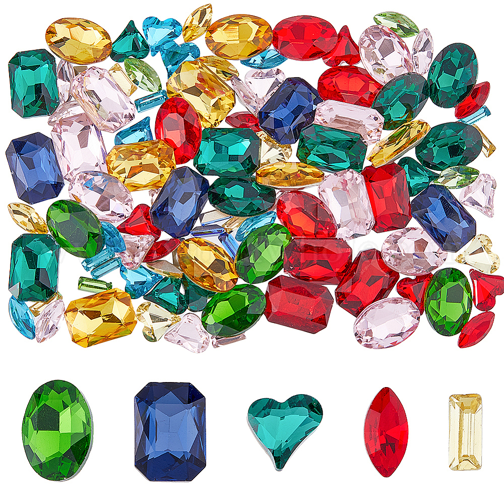 100 шт 25 стили стеклянные кабошоны со стразами, заостренная спина и посеребренная спинка, разнообразные