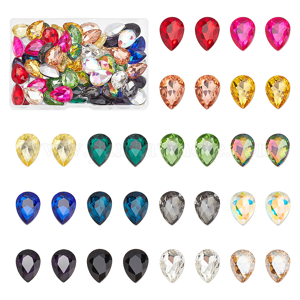 96 шт 16 цвета стеклянные кабошоны со стразами, задние и задние, граненые, слеза (02PZX4)