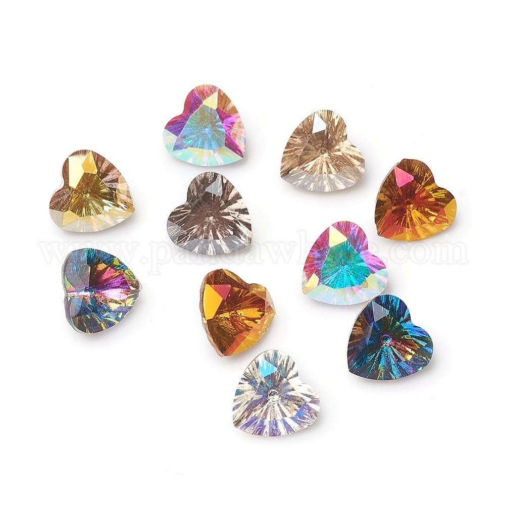Гальванические стеклянные кабошоны со стразами, задние и задние, граненые, сердце