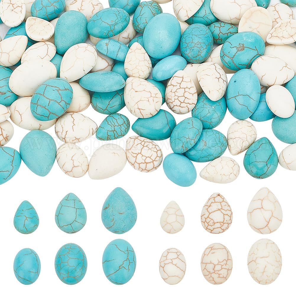 96шт. 12 стили синтетические бирюзовые окрашенные кабошоны, для ювелирных украшений своими руками, слеза и овал