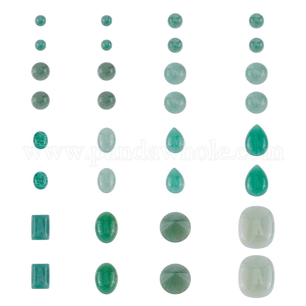 32шт 12 стили натуральный зеленый авантюрин кабошоны, полукруглый, конус и капля, разнообразные