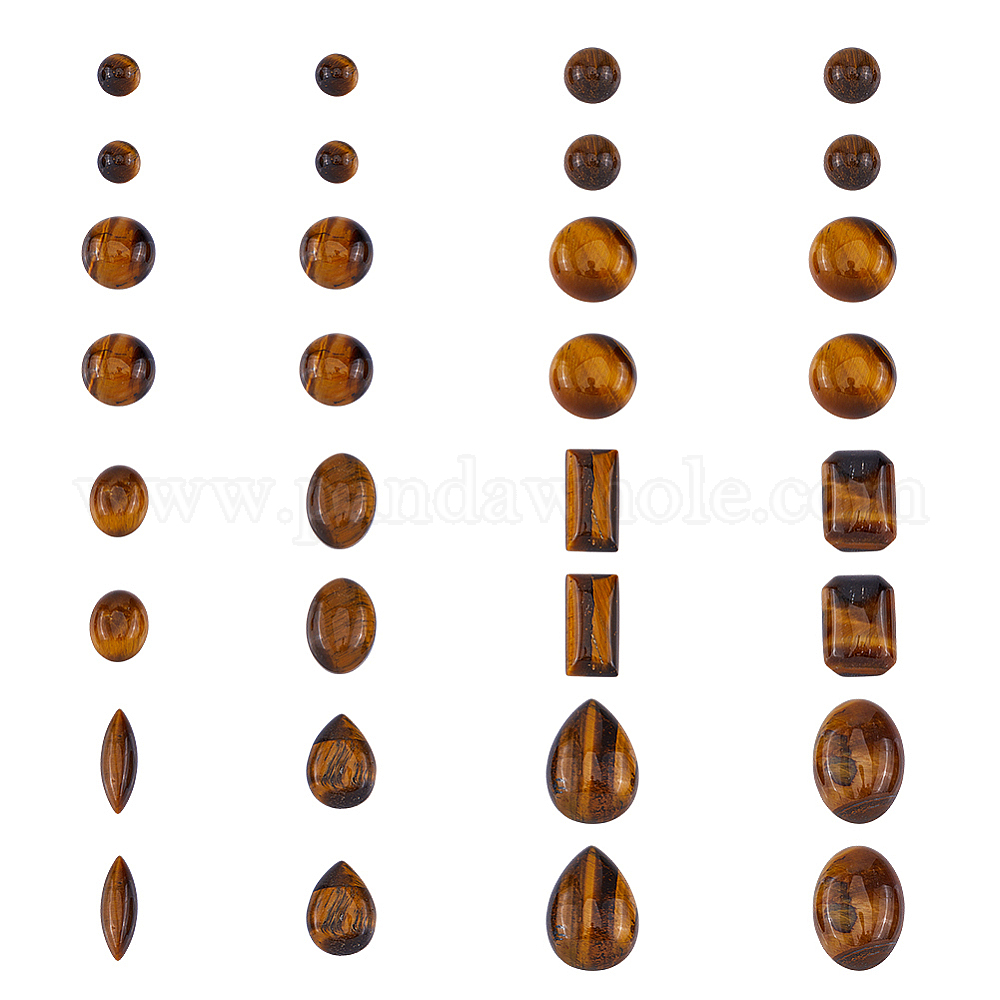 32шт 12 стили натуральный тигровый глаз кабошоны, полукруглый, конский глаз и прямоугольник, разнообразные