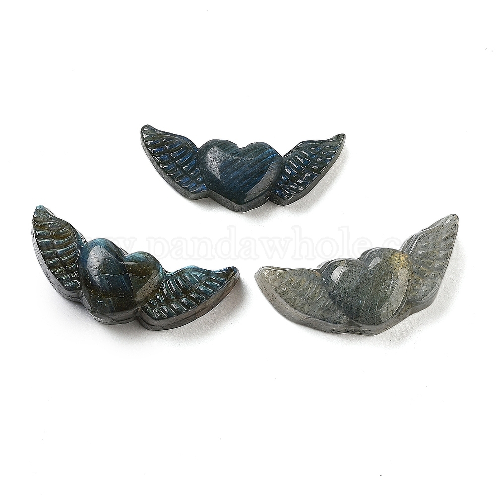 Натуральный лабрадорит, резные кабошоны, сердце с крыльями ангела