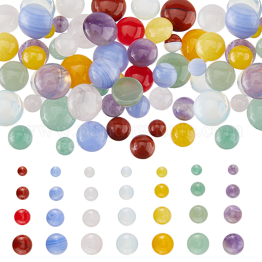 56шт. 28 стили смешанные драгоценные камни кабошоны, плоско-круглые, окрашенные и неокрашенные