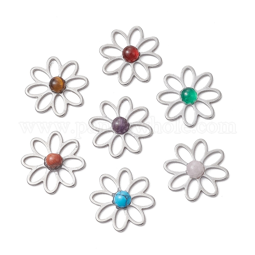 201 Кабошоны из драгоценных камней в форме цветка из нержавеющей стали, смешанные окрашенные и неокрашенные, платина