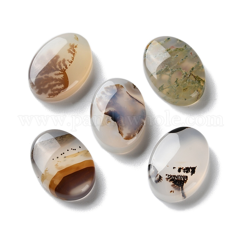 • Дендритный Агат Натуральные дендритные агатовые кабошоны, овальные, 18x13x5 мм