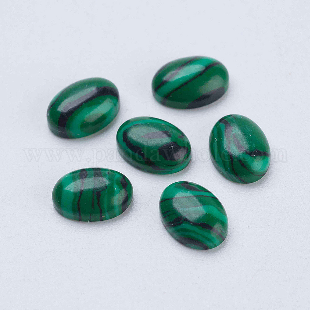 • Малахит Синтетические малахитовые кабошоны, овальные, 8x6x3 мм