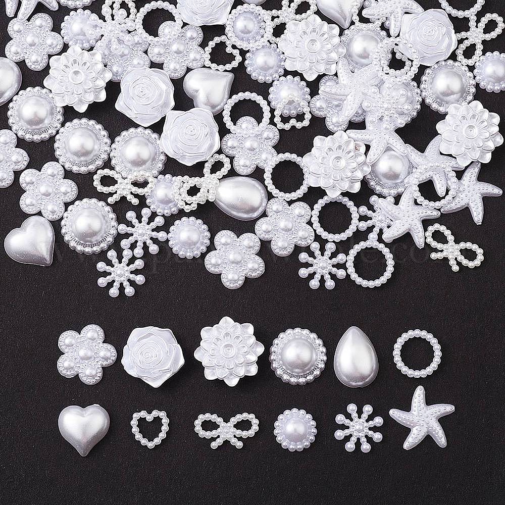 100шт 12 стили абс пластик имитация жемчуга кабошоны, цветок/сердце/капля/морская звезда/бантик/кольцо