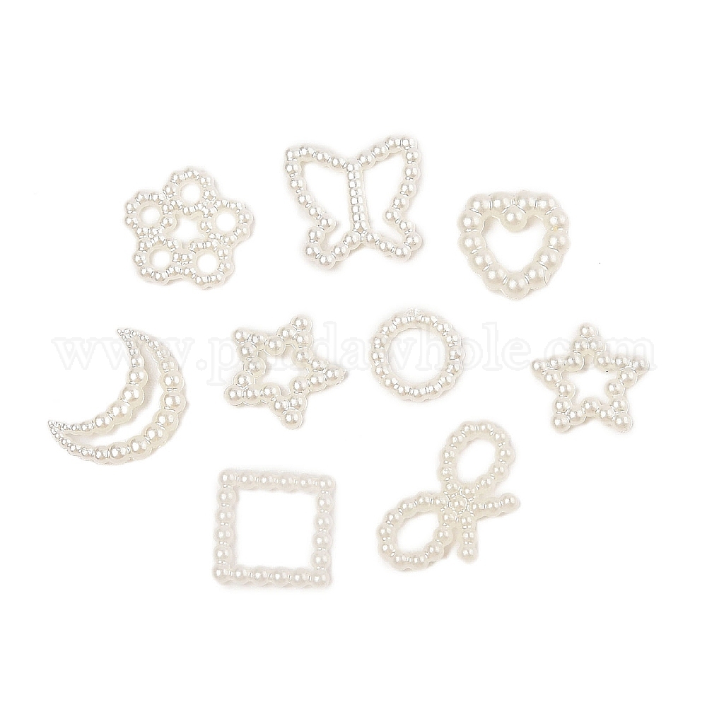 Абс жемчужный пластик кабошоны, бабочка, луна, звезда, сердце, кольцо, квадрат, цветок, бант