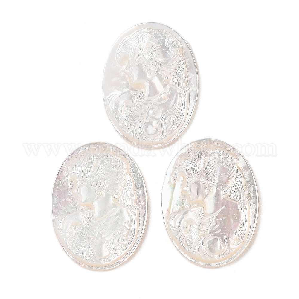 Натуральный белый кабошоны оболочки, овал с резной девушкой