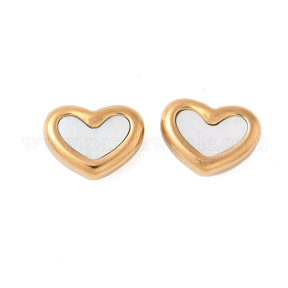 304 Кабошоны из натуральной раковины, инкрустированные нержавеющей сталью, ионное покрытие (IP), сердце, цвет морской раковины