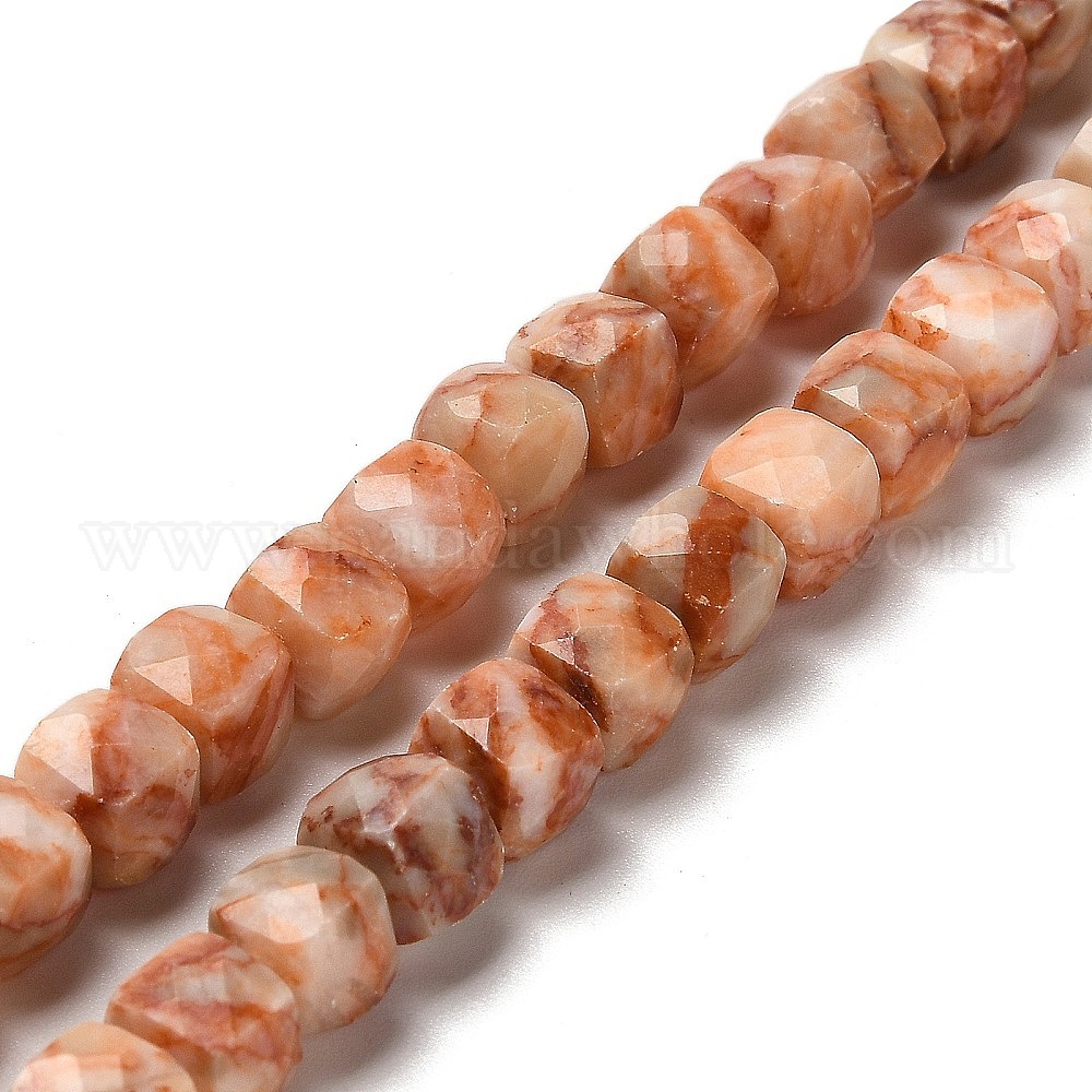 Бусы из натурального красного камня, граненые, кубические