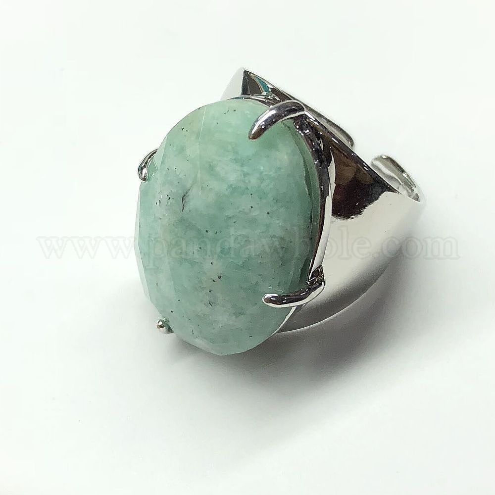 Регулируемое кольцо из натурального камня с граненой поверхностью и сверкающими украшениями из сине-зеленого жадеита