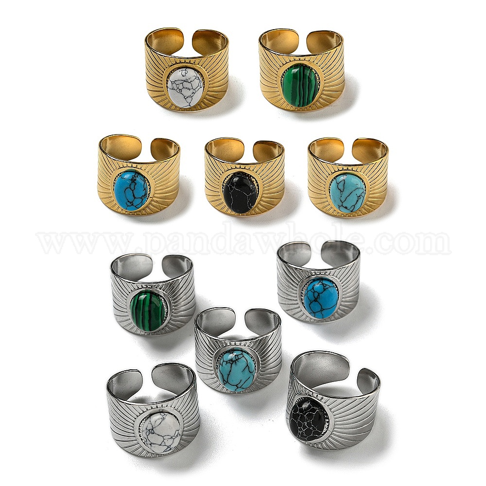 304 открытые манжеты из нержавеющей стали, Овальные широкие кольца с синтетическим малахитом и бирюзой для женщин и мужчин