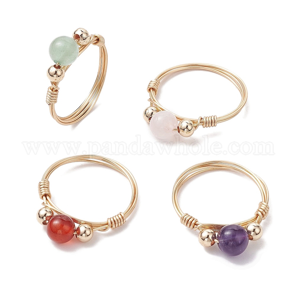 Круглые кольца на палец с натуральными и синтетическими камнями, женское кольцо из медной проволоки