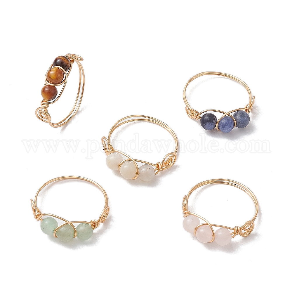 Круглые кольца на палец с натуральным зеленым авантюрином, тигровым глазом, белым лунным камнем, содалитом и розовым кварцем, женское кольцо из медной проволоки