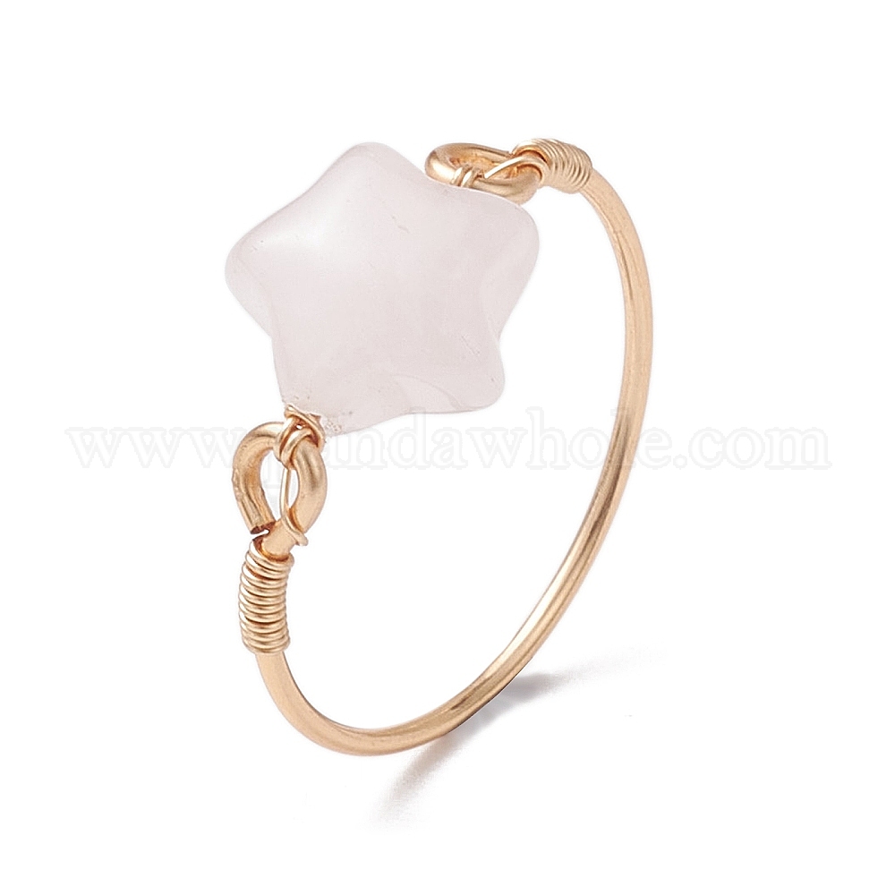 Кольца на палец со звездами из натурального розового кварца, женское кольцо из медной проволоки